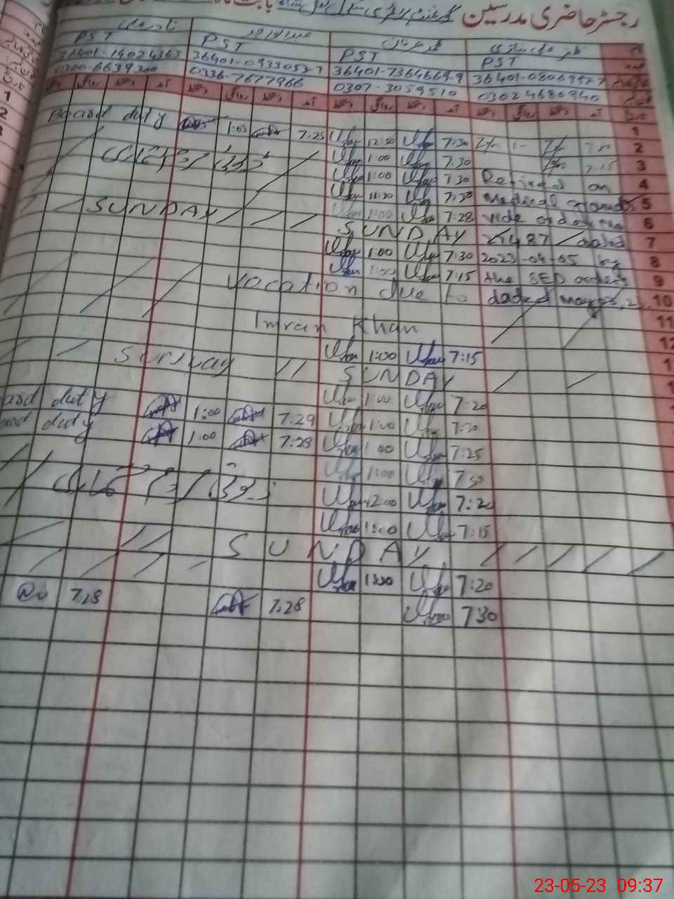 | Name: Mo**** Ir**** Designation: (School Headmaster's/Headmistress's) PST Phone/Cell Number: 03**** |