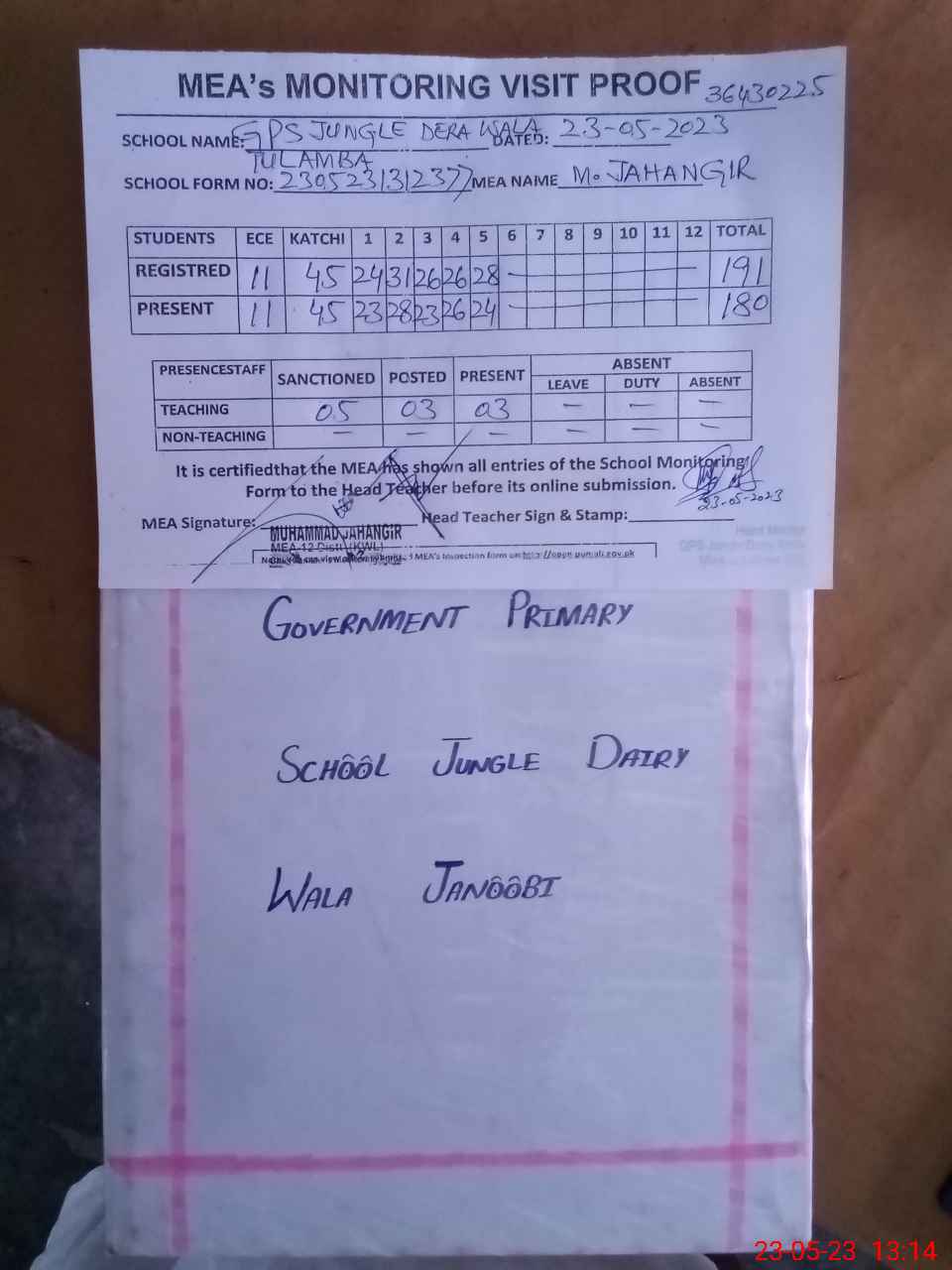 | EMIS Code: 36430225 | Name of School: GPS JUNGLE DARA WALA, TULAMBA | |||