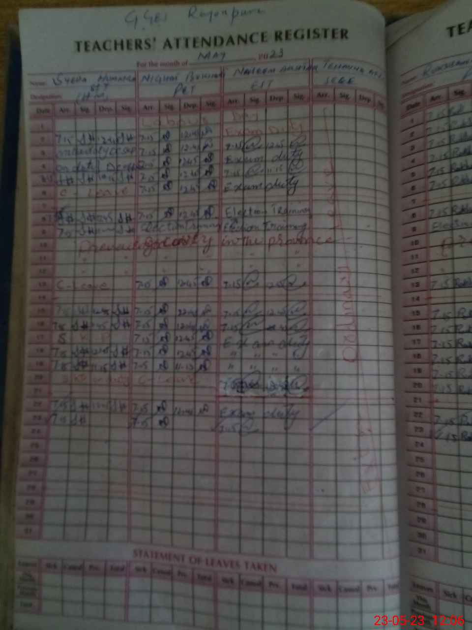 | Leave | Duty | Absent | Maternity | Medical | Ex- Pak |