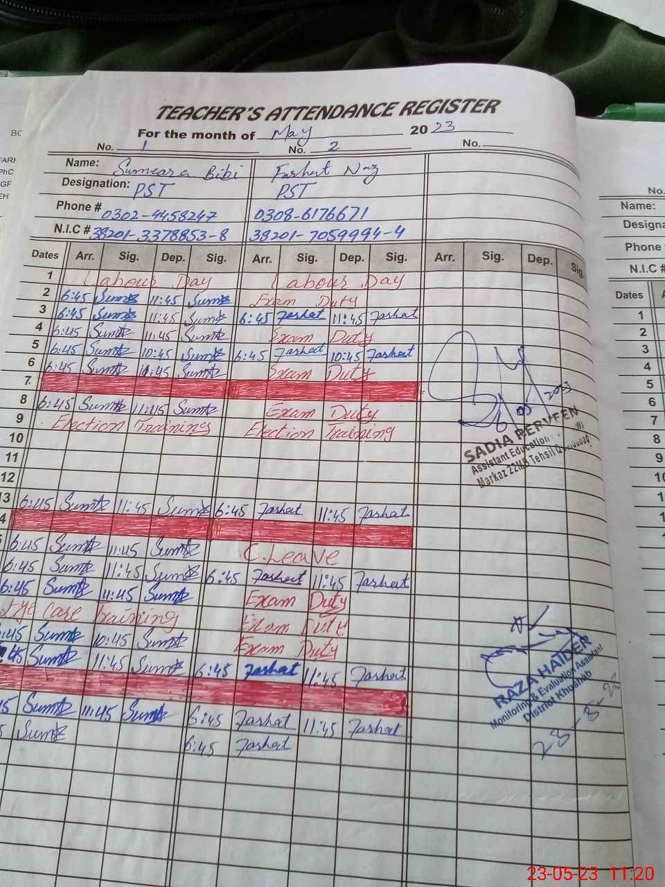 | CNIC | Full Name | Designation | R/C | Absence During Last Calender Month |