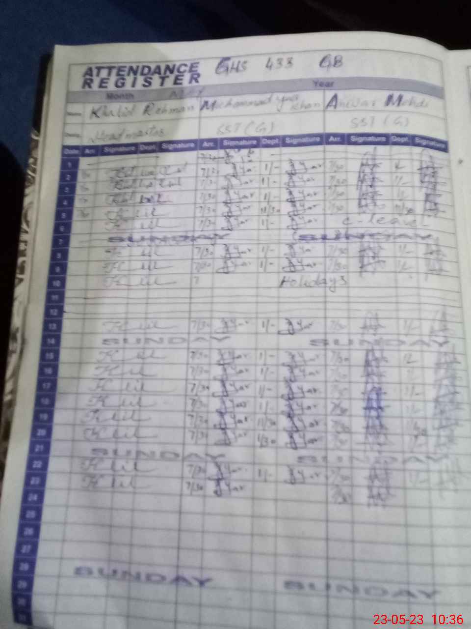 | CNIC | Full Name | Designation | R/C | Absence During Last Calender Month |