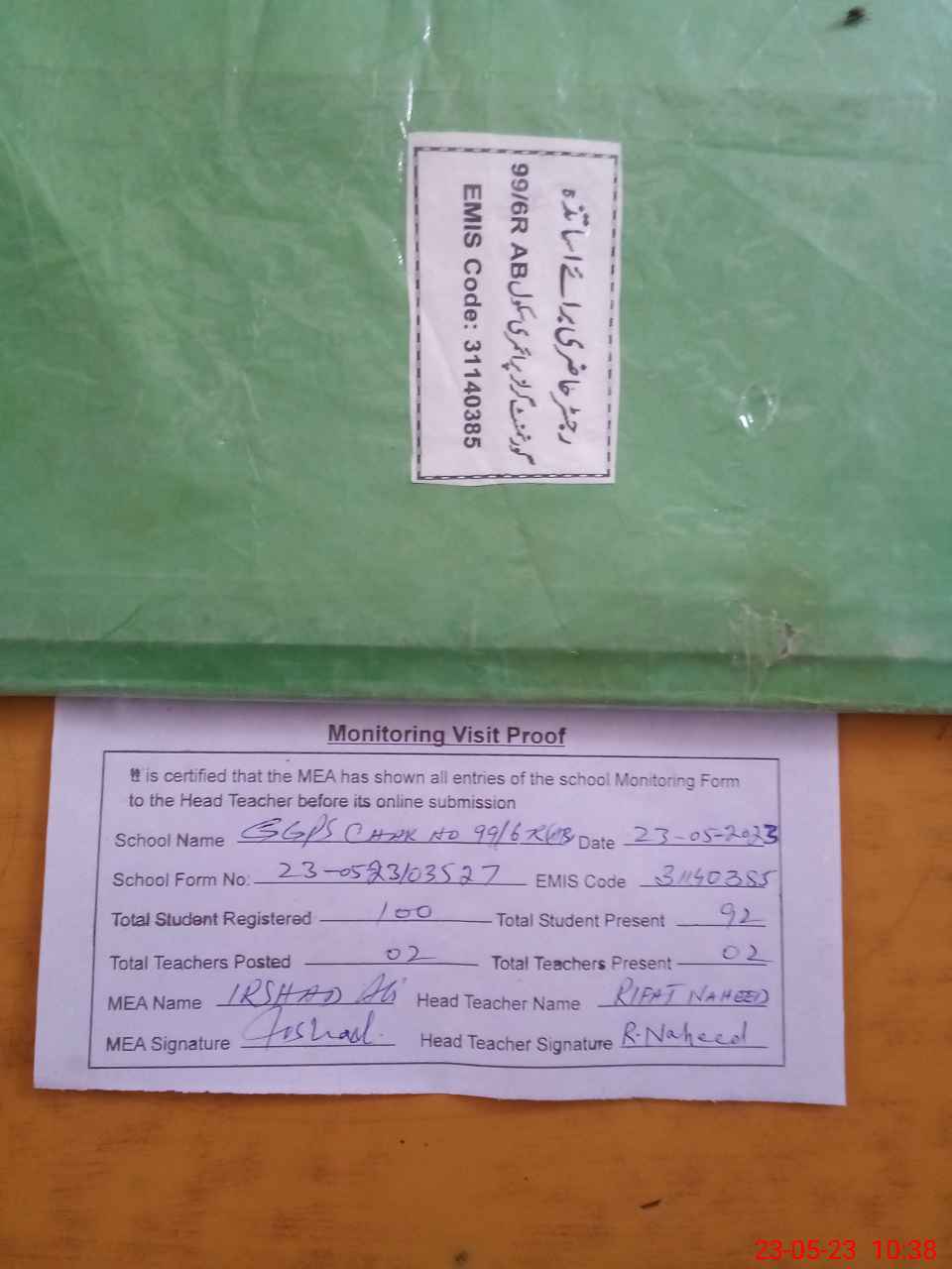 | EMIS Code: 31140385 | Name of School: GGPS CHAK 99/6-R AB | |||