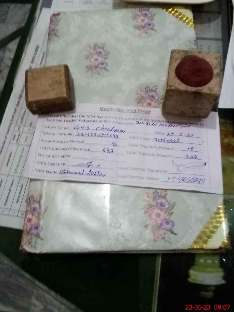 | Attendance Register | Head Teacher | MEA with School | Visit Proof |