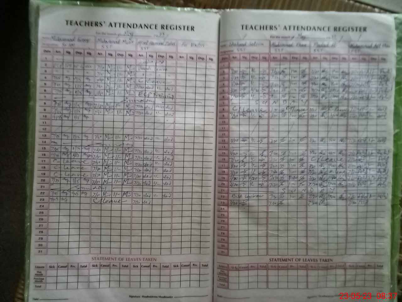 | 36**** | Mu**** Fa**** | Sr. Headmaster | Regular | 0 | 0 | 0 | 0 | 0 | 0 | 0 | 0 | 0 | Present (Latecomer) |