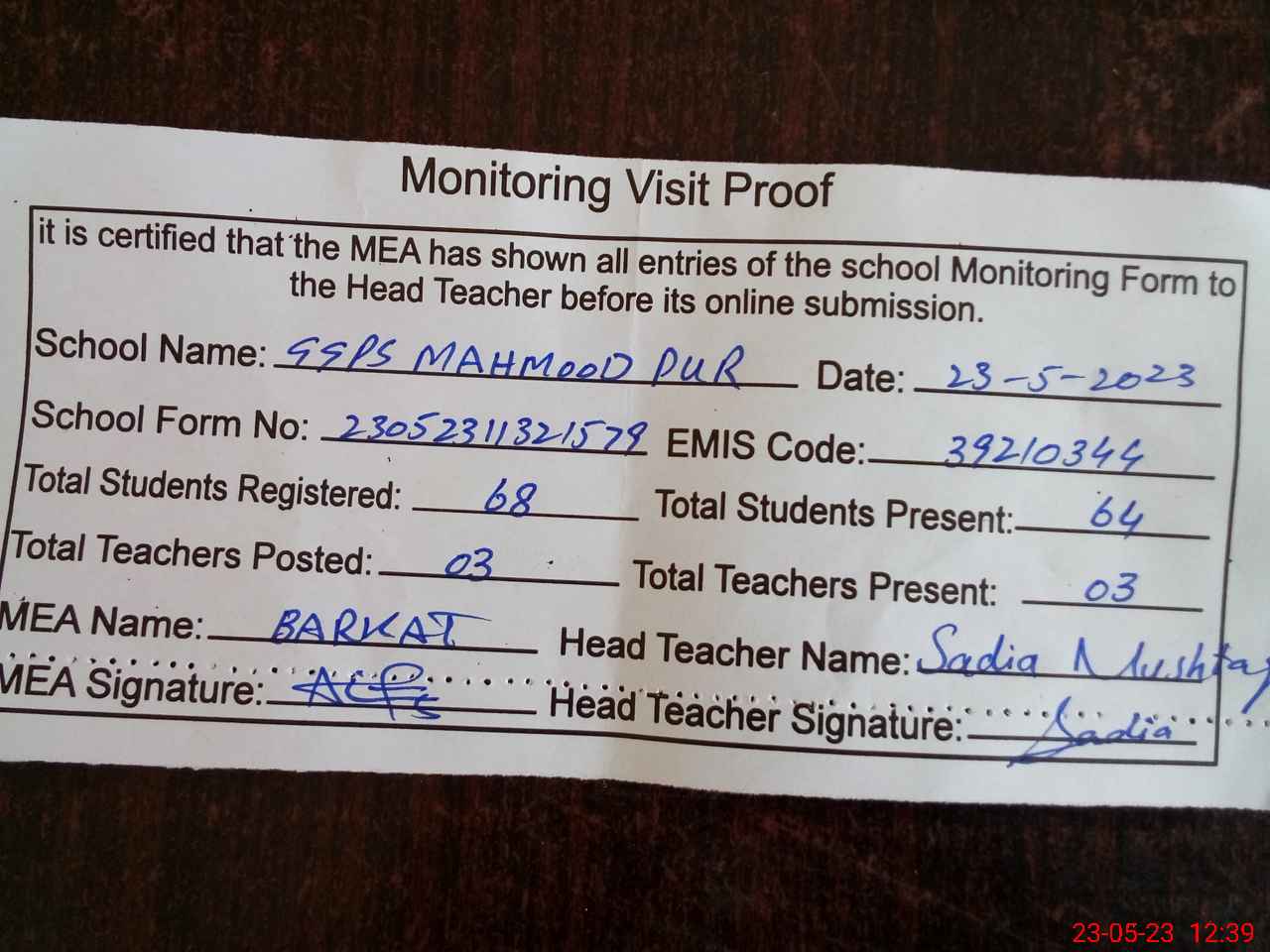 | EMIS Code: 39210344 | Name of School: GGPS MAHMOOD PUR | |||