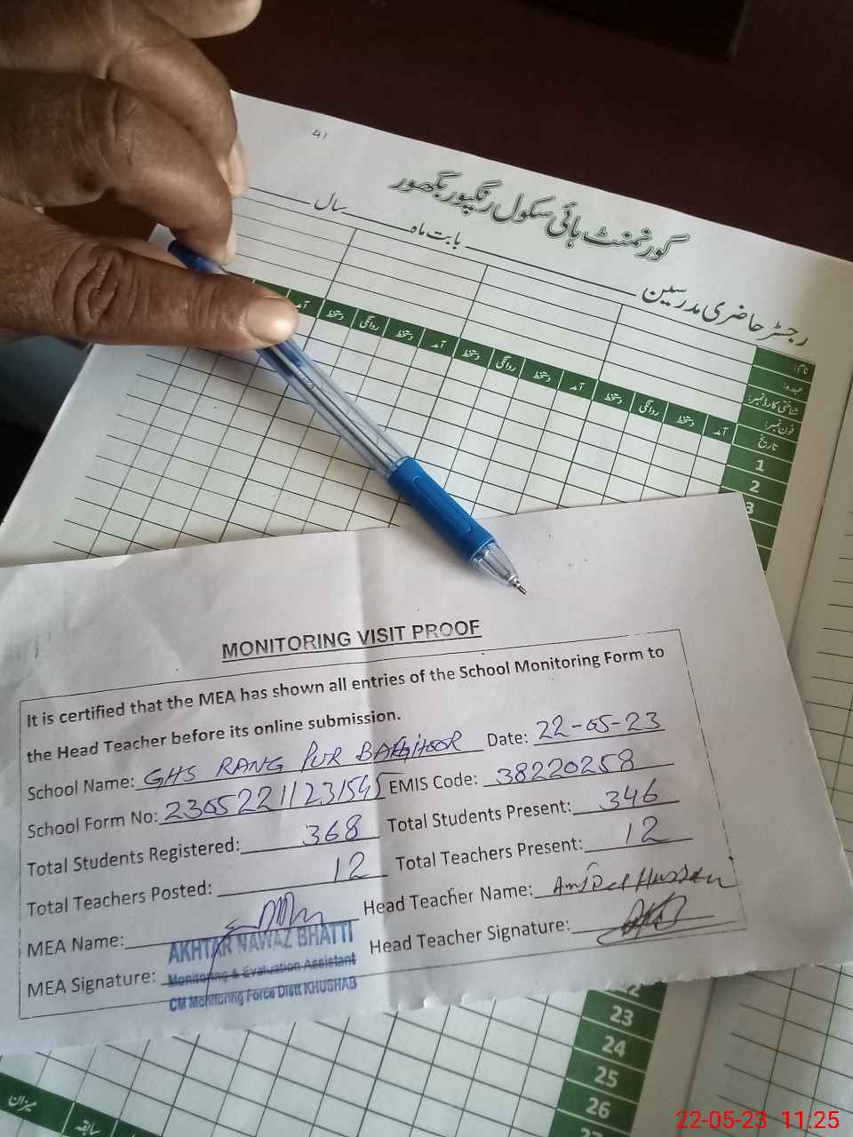 | Attendance Register | Head Teacher | MEA with School | Visit Proof |
