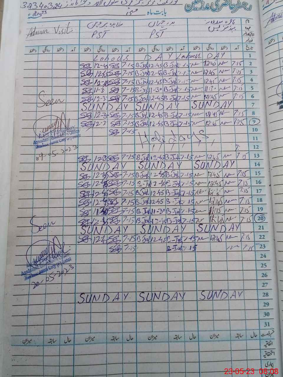 | Name: NA**** SU**** Designation: (School Headmaster's/Headmistress's) PST Phone/Cell Number: 03**** |