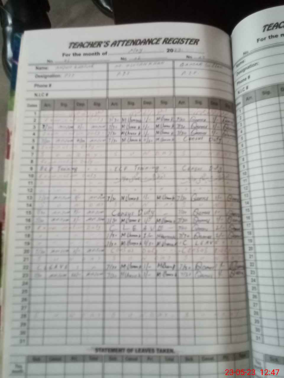 | CNIC | Full Name | Designation | R/C | Absence During Last Calender Month |