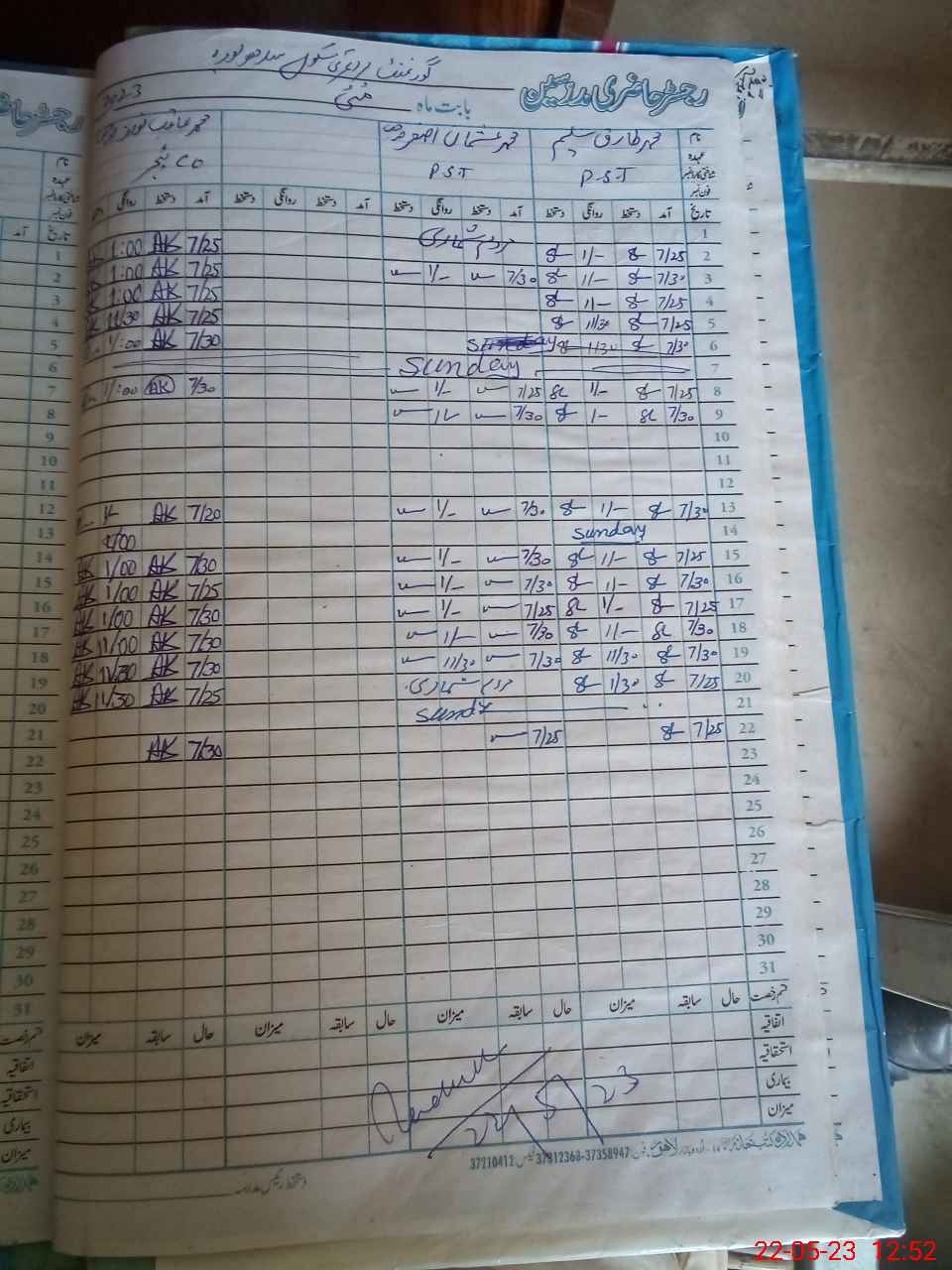 | Name: MU**** US**** AS**** Designation: (School Headmaster's/Headmistress's) PST Phone/Cell Number: 03**** |