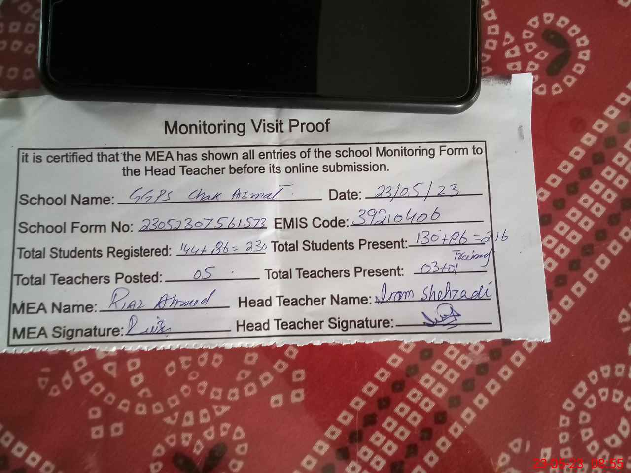 | EMIS Code: 39210406 | Name of School: GGPS CHAK AZMAT | |||