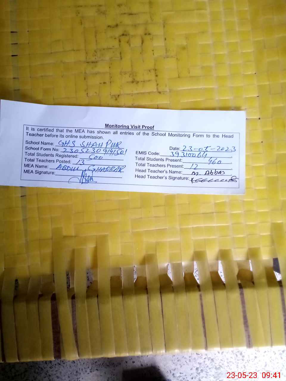 | EMIS Code: 39310064 | Name of School: GHS SHAH PUR | |||