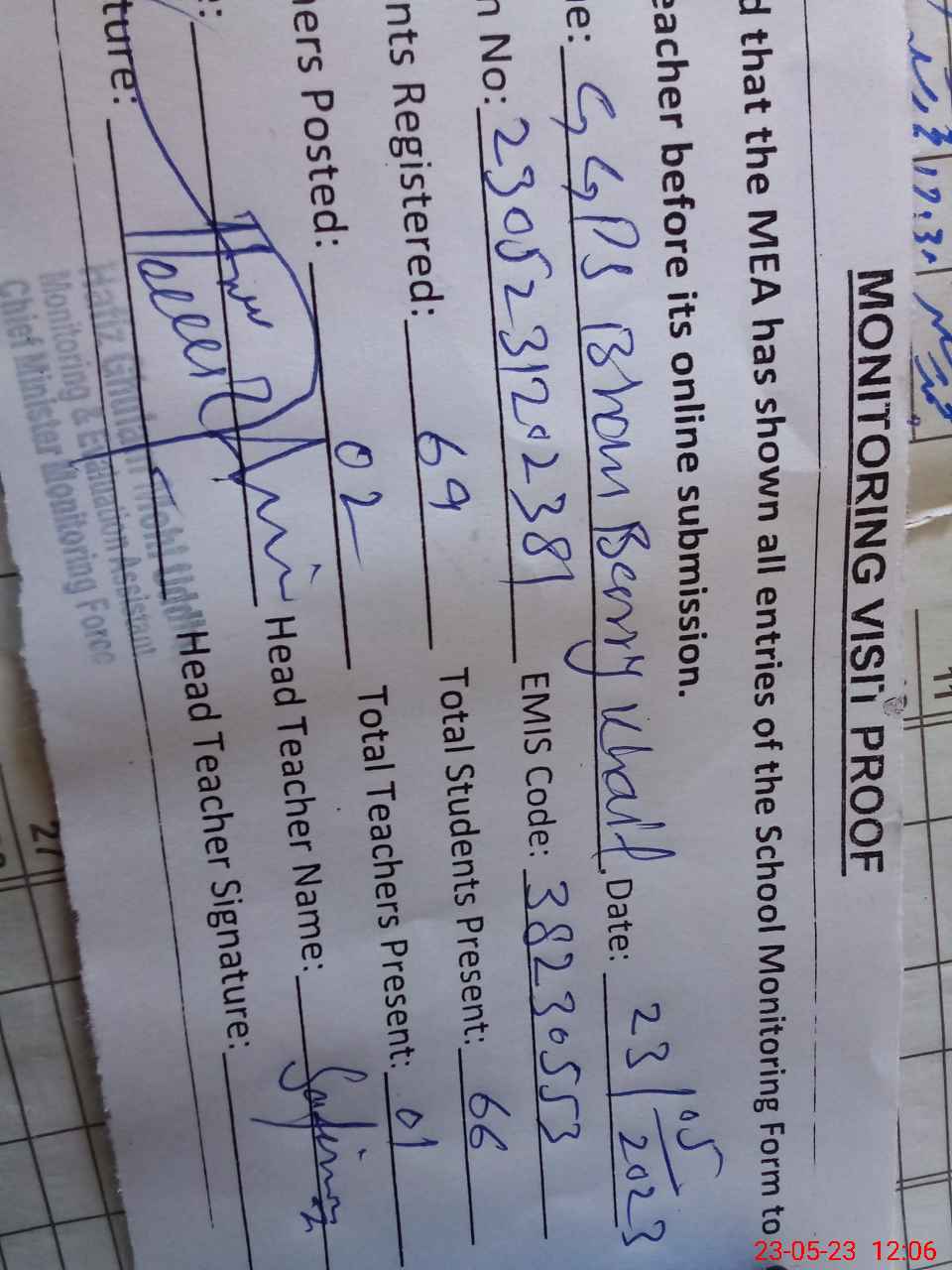 | EMIS Code: 38230553 | Name of School: GGPS BHAN BARRY KHAIL | |||