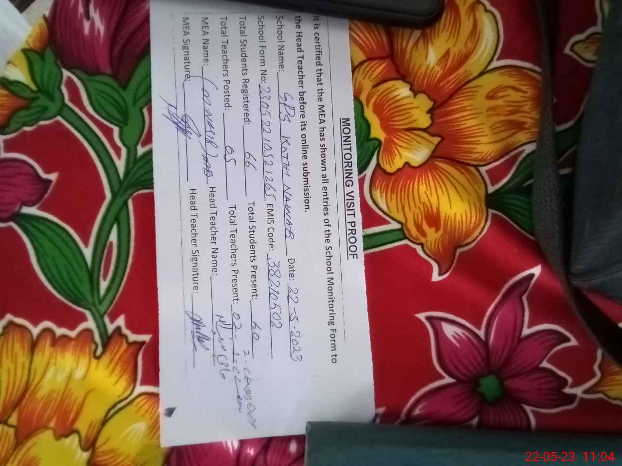 | EMIS Code: 38210502 | Name of School: GPS KOTHI NAWAB | |||