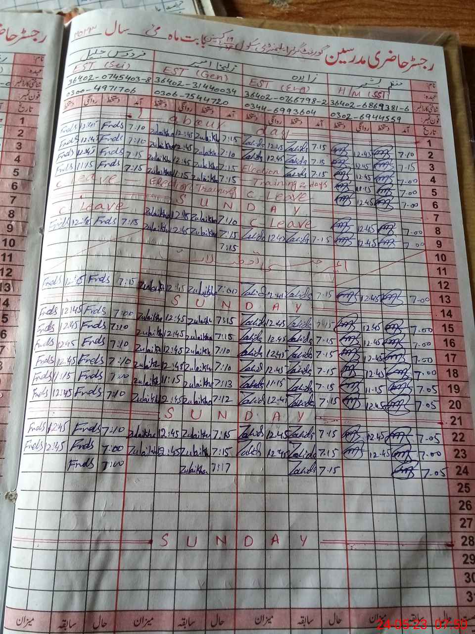 | CNIC | Full Name | Designation | R/C | Absence During Last Calender Month |