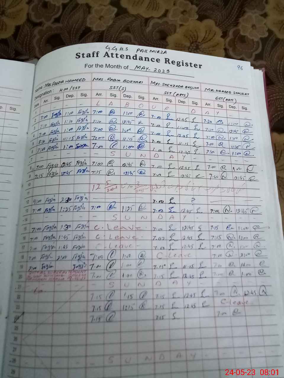 | 37**** | Fo**** Ha**** | Regular | 0 | 0 | 0 | 0 | 0 | 0 | 0 | 0 | 0 | Exam Duty | |