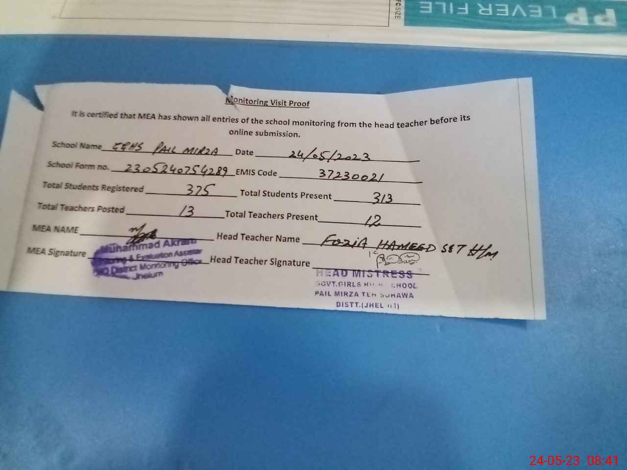 | EMIS Code: 37230021 | Name of School: GGHS PAIL MIRZA | |||