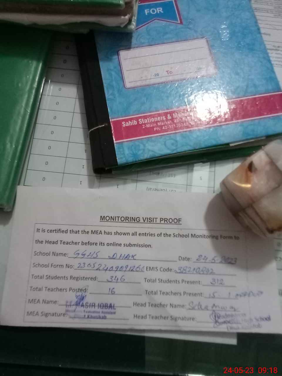 | Attendance Register | Head Teacher | MEA with School | Visit Proof |