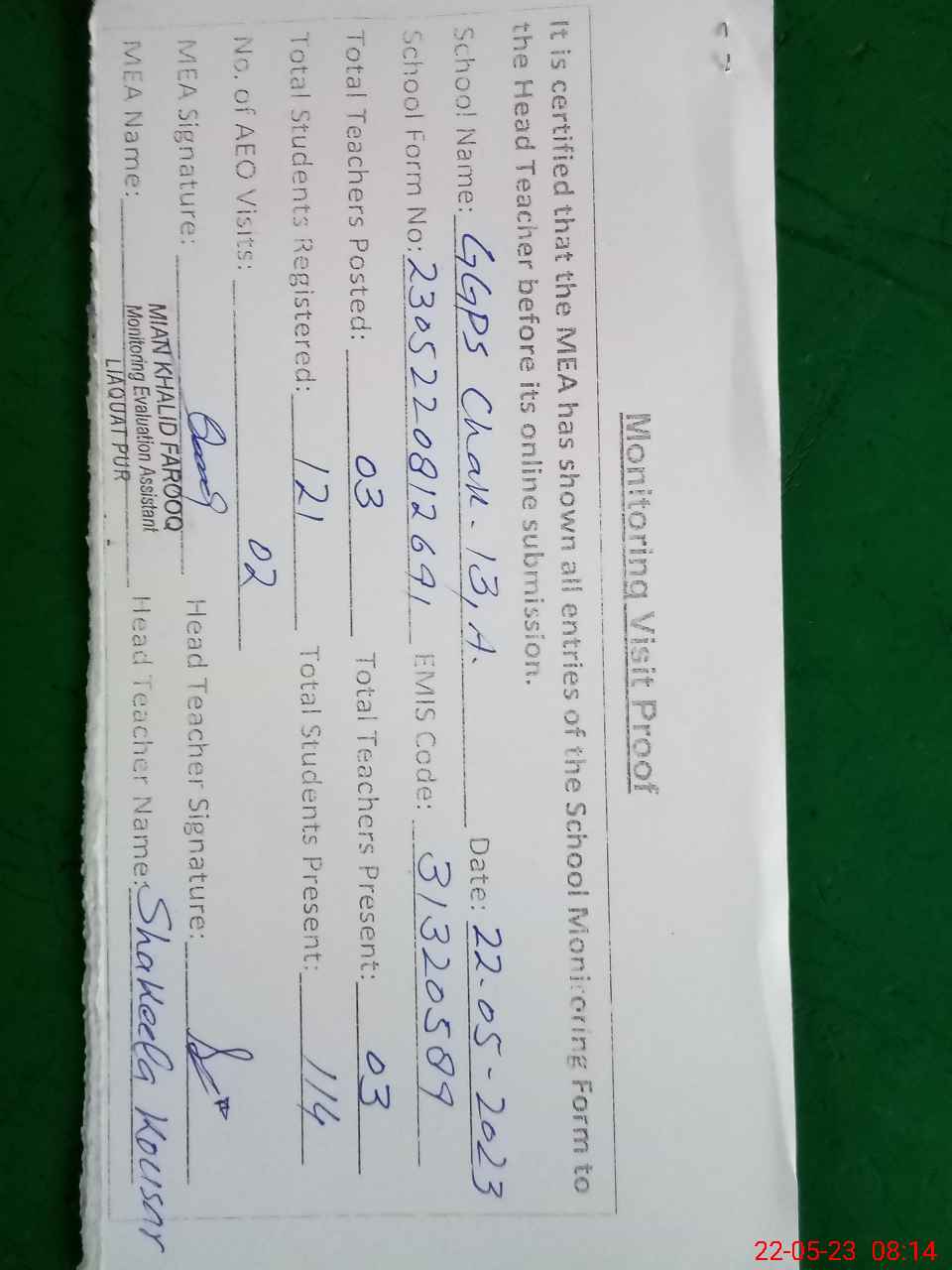 | EMIS Code: 31320589 | Name of School: GGPS CHAK NO.13/A | |||