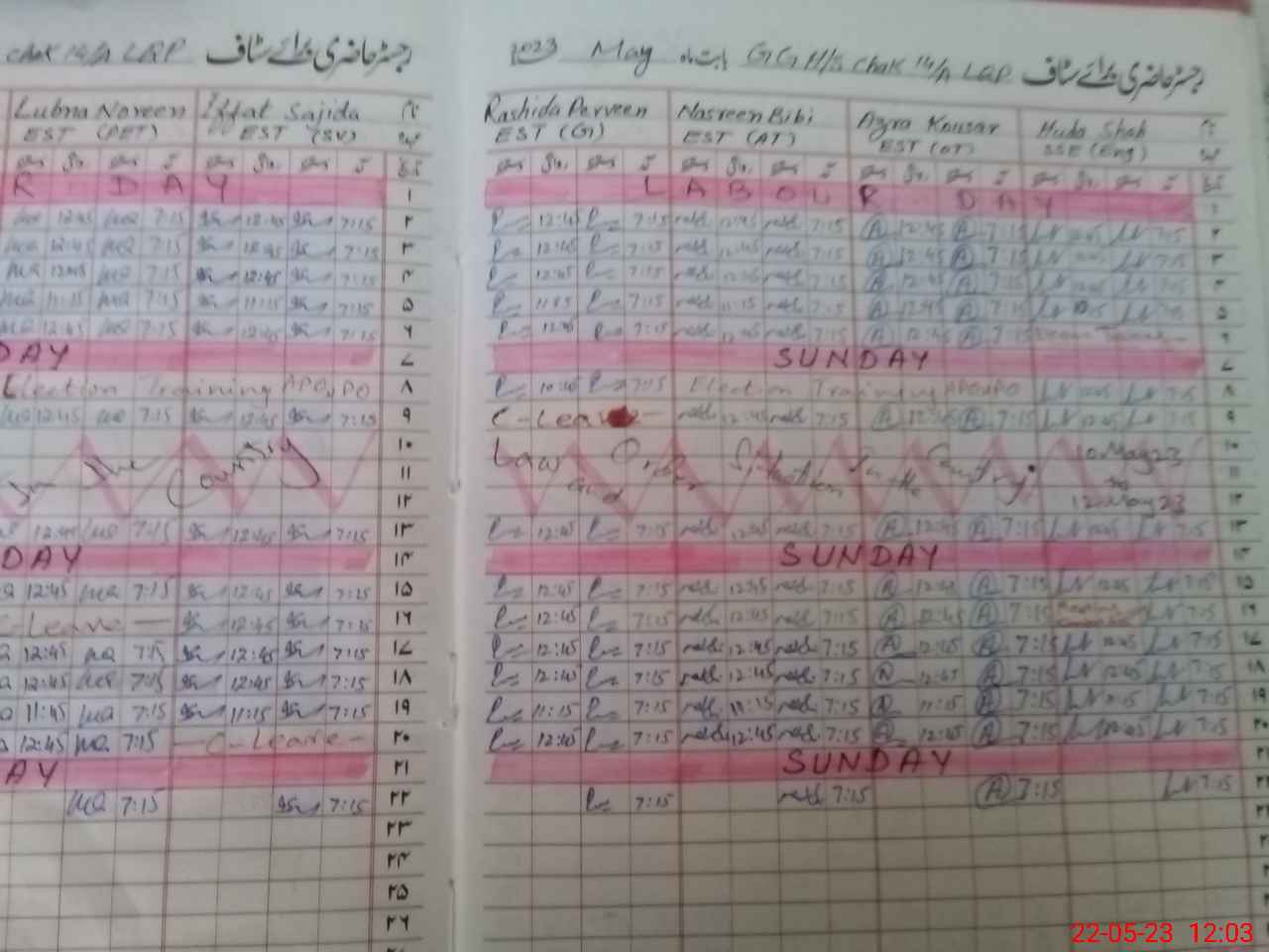 | Leave | Duty | Absent | Maternity | Medical | Ex- Pak |