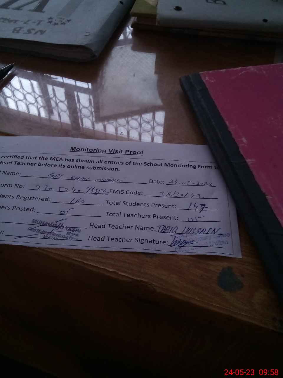 | Attendance Register | Head Teacher | MEA with School | Visit Proof |