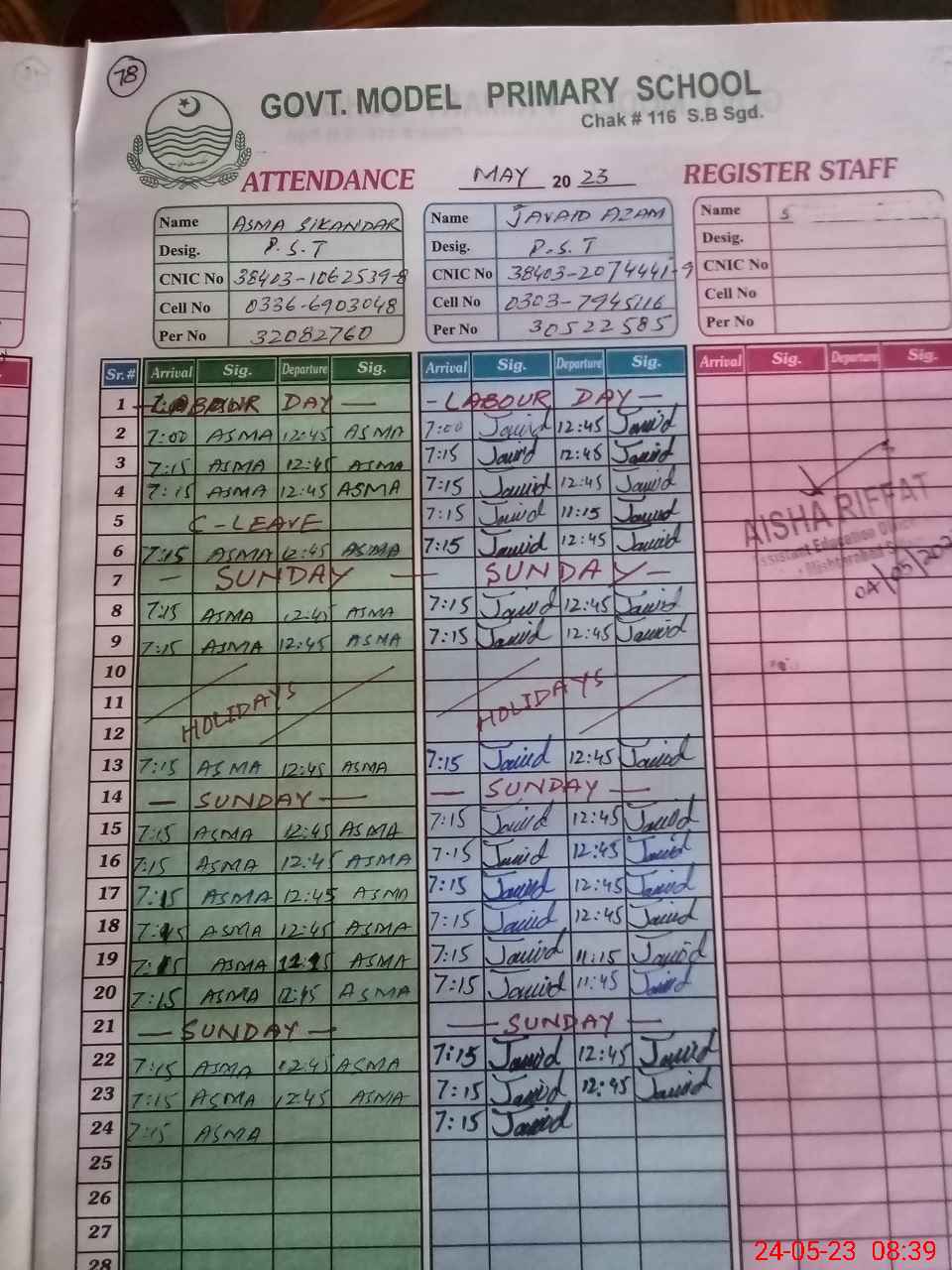 | Name: Ja**** Az**** Designation: (School Headmaster's/Headmistress's) PST (SCI ) Phone/Cell Number: 03**** |