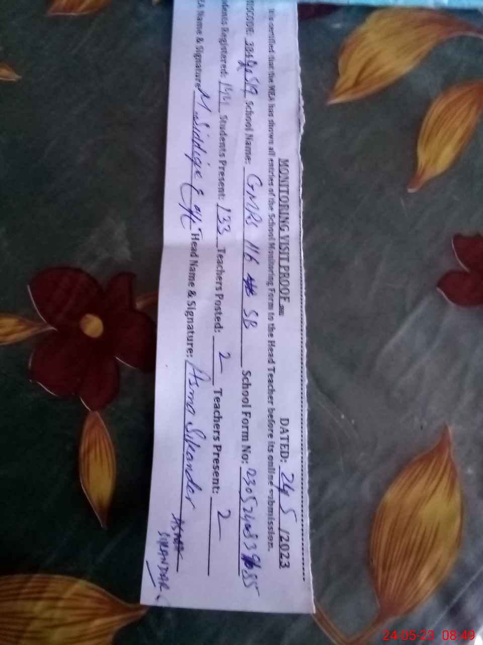 | EMIS Code: 38420519 | Name of School: GMPS CHAK NO.116 SB | |||