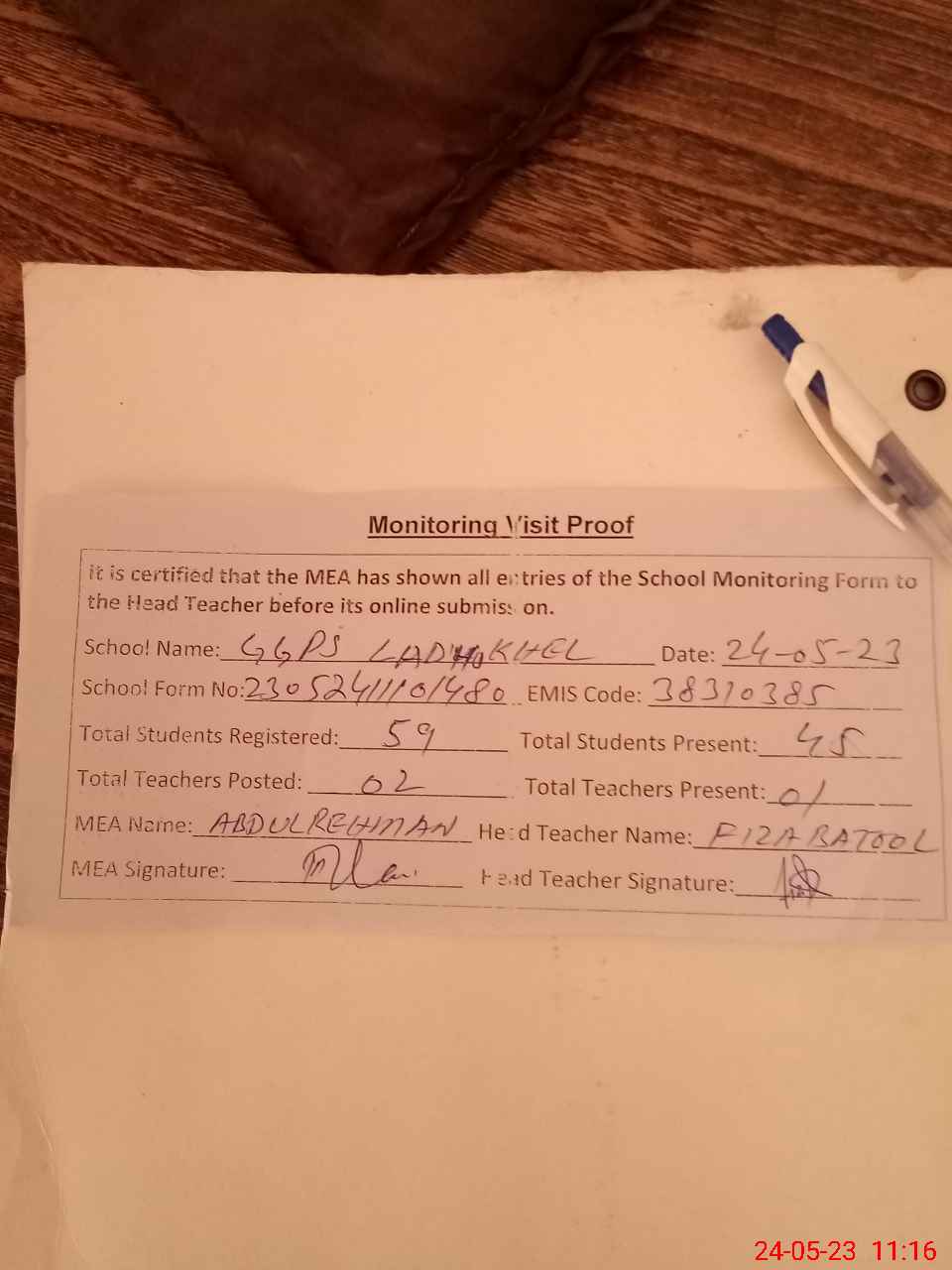 | EMIS Code: 38310385 | Name of School: GGPS LADHU KHEL | |||