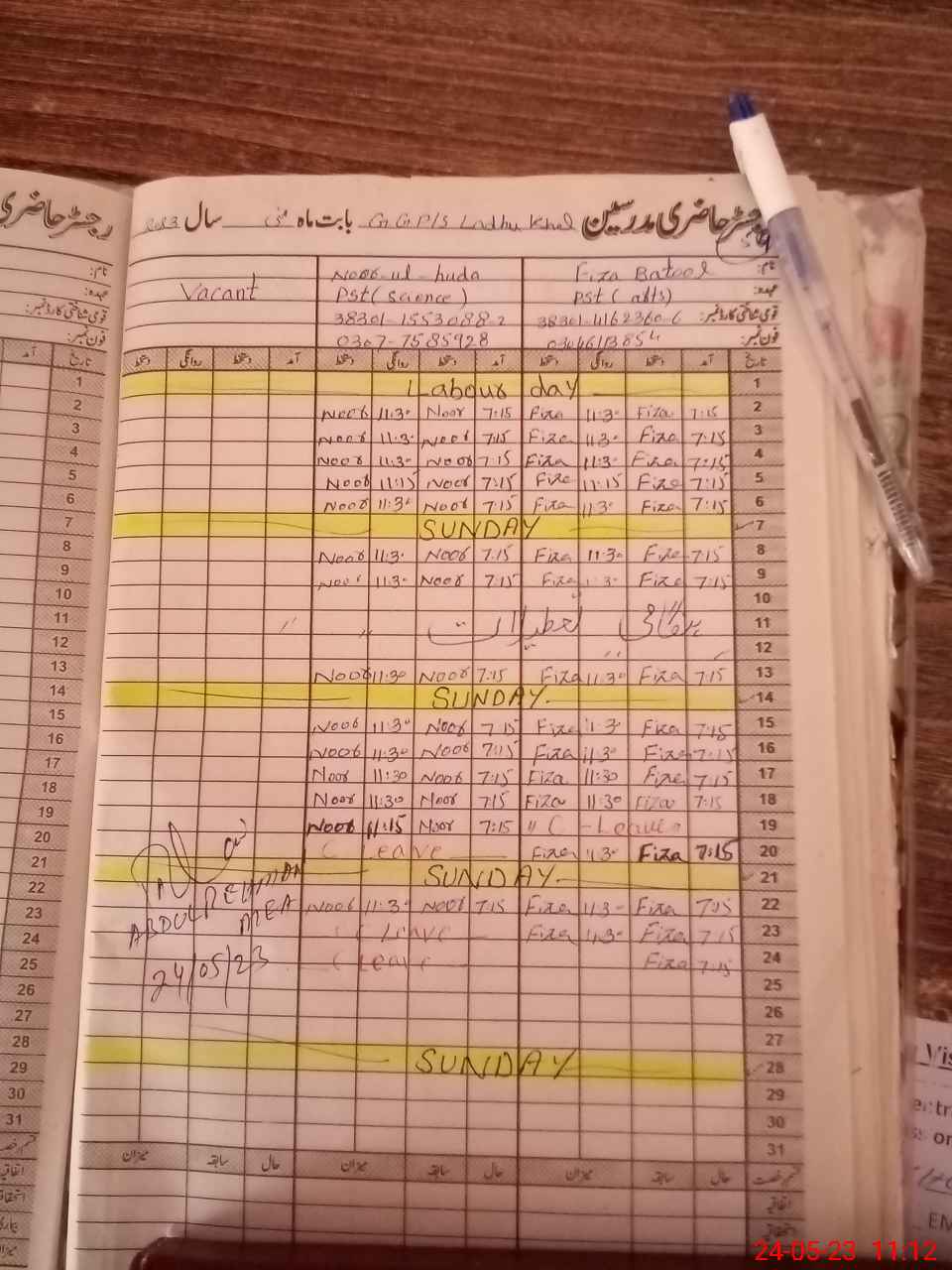 | Name: No**** UlHu**** Designation: (School Headmaster's/Headmistress's) PST Phone/Cell Number: 03**** |