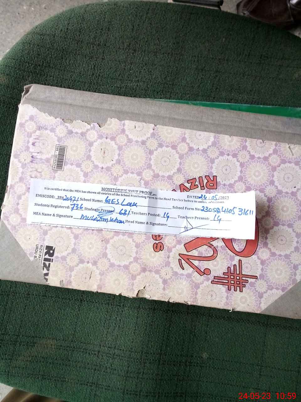 | Attendance Register | Head Teacher | MEA with School | Visit Proof |