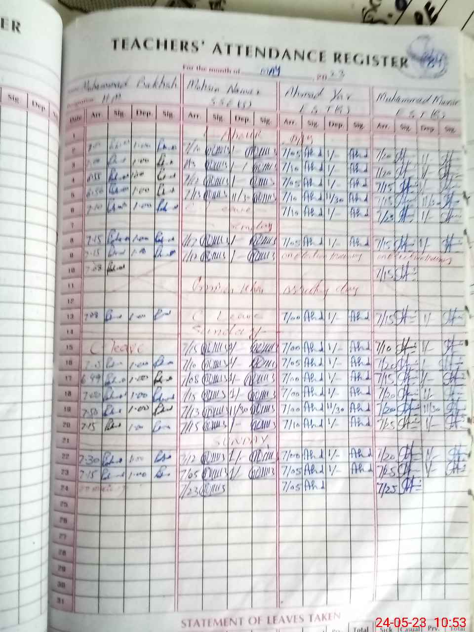 | Leave | Duty | Absent | Maternity | Medical | Ex- Pak |