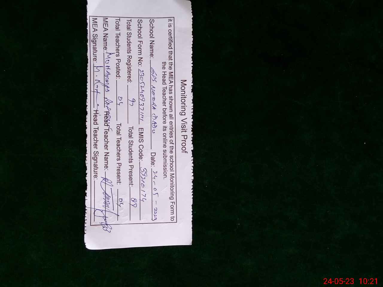 | Certified that this School was Inspected by the Undersigned MEA/DMO Today and the Information Stated Above is as Per Record. | |||||