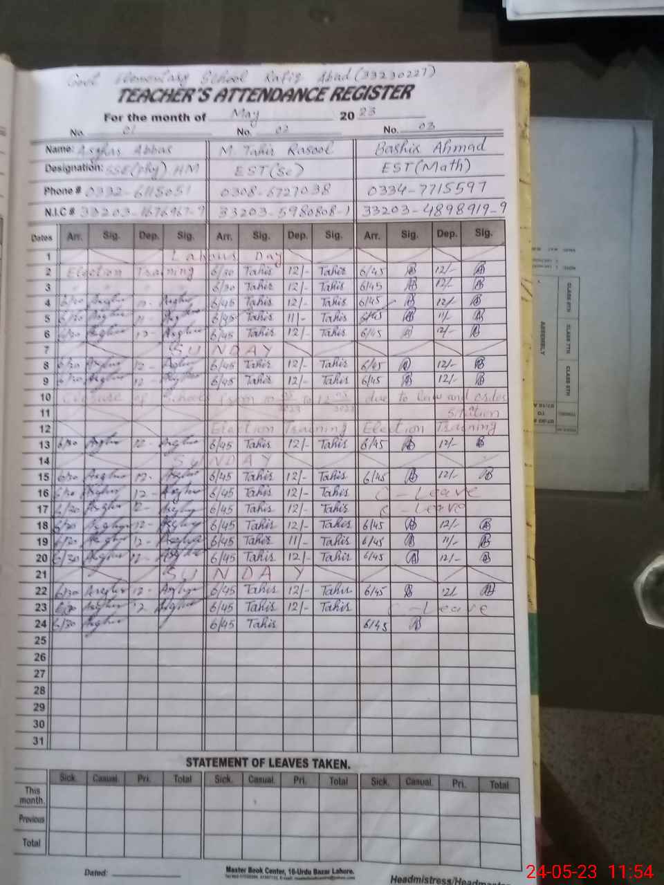 | Name: Ra**** Al**** Designation: (School Headmaster's/Headmistress's) EST Phone/Cell Number: 03**** |