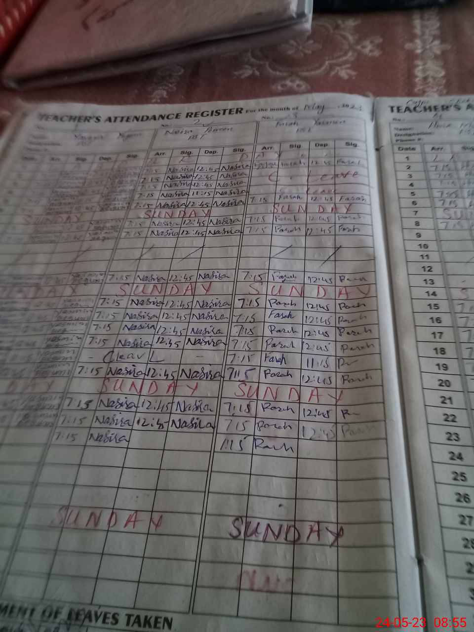 | Leave | Duty | Absent | Maternity | Medical | Ex- Pak |