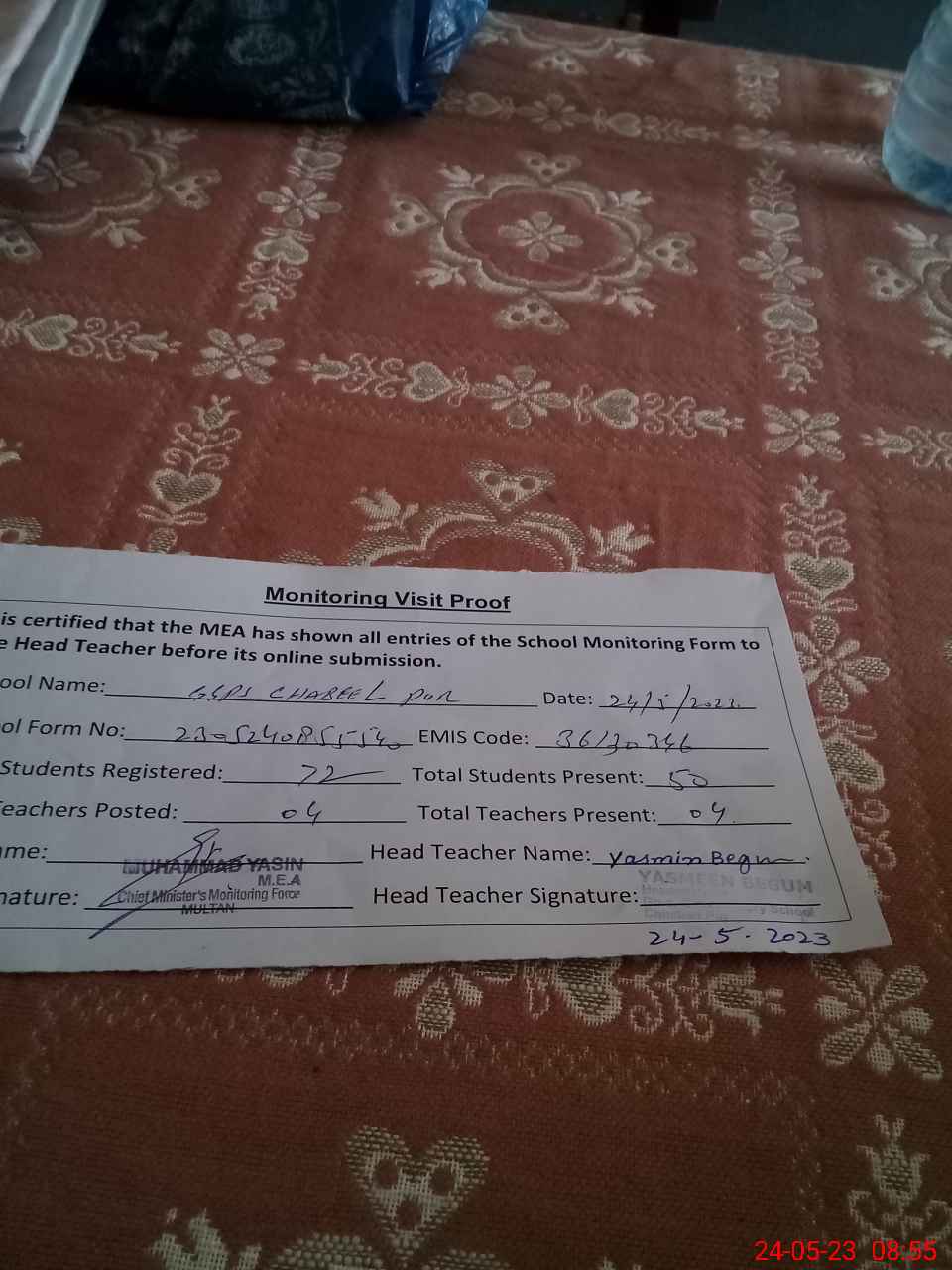 | Attendance Register | Head Teacher | MEA with School | Visit Proof |