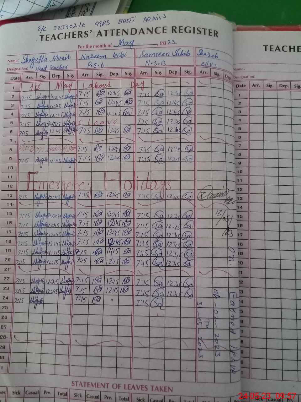 | Name: Sh**** Mu**** Designation: (School Headmaster's/Headmistress's) PST Phone/Cell Number: 03**** |