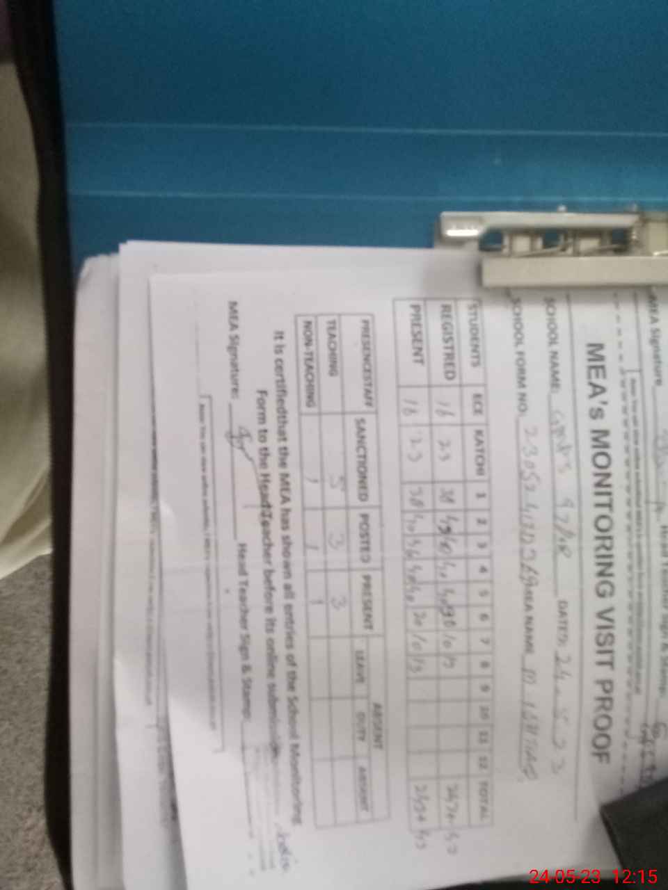 | Attendance Register | Head Teacher | MEA with School | Visit Proof |