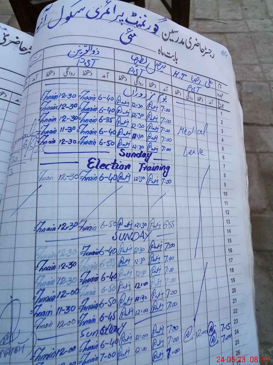 | Leave | Duty | Absent | Maternity | Medical | Ex- Pak |