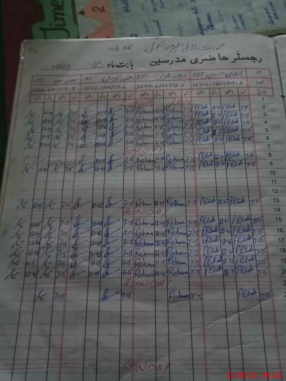 | Name: PE**** EH**** Designation: (School Headmaster's/Headmistress's) S.S.T.(general) Phone/Cell Number: 03**** |