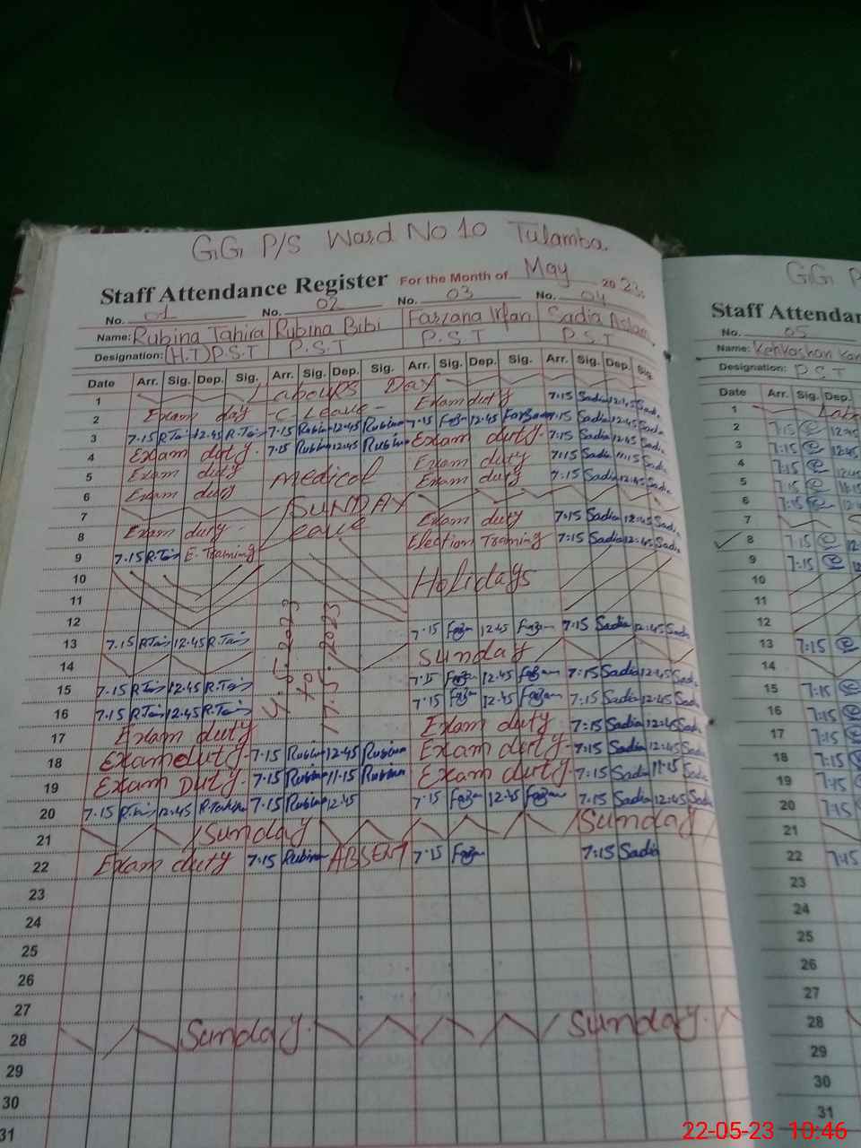 | 36**** | Ru**** Ta**** | PST | Regular | 1 | 19 | 0 | 0 | 0 | 0 | 0 | 0 | 1 | Exam Duty |