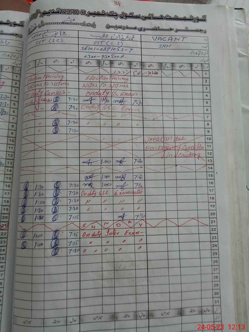 | 36**** | Mu**** Ir**** | SST | Regular | 0 | 0 | 0 | 0 | 0 | 0 | 0 | 0 | 0 | Exam Duty |