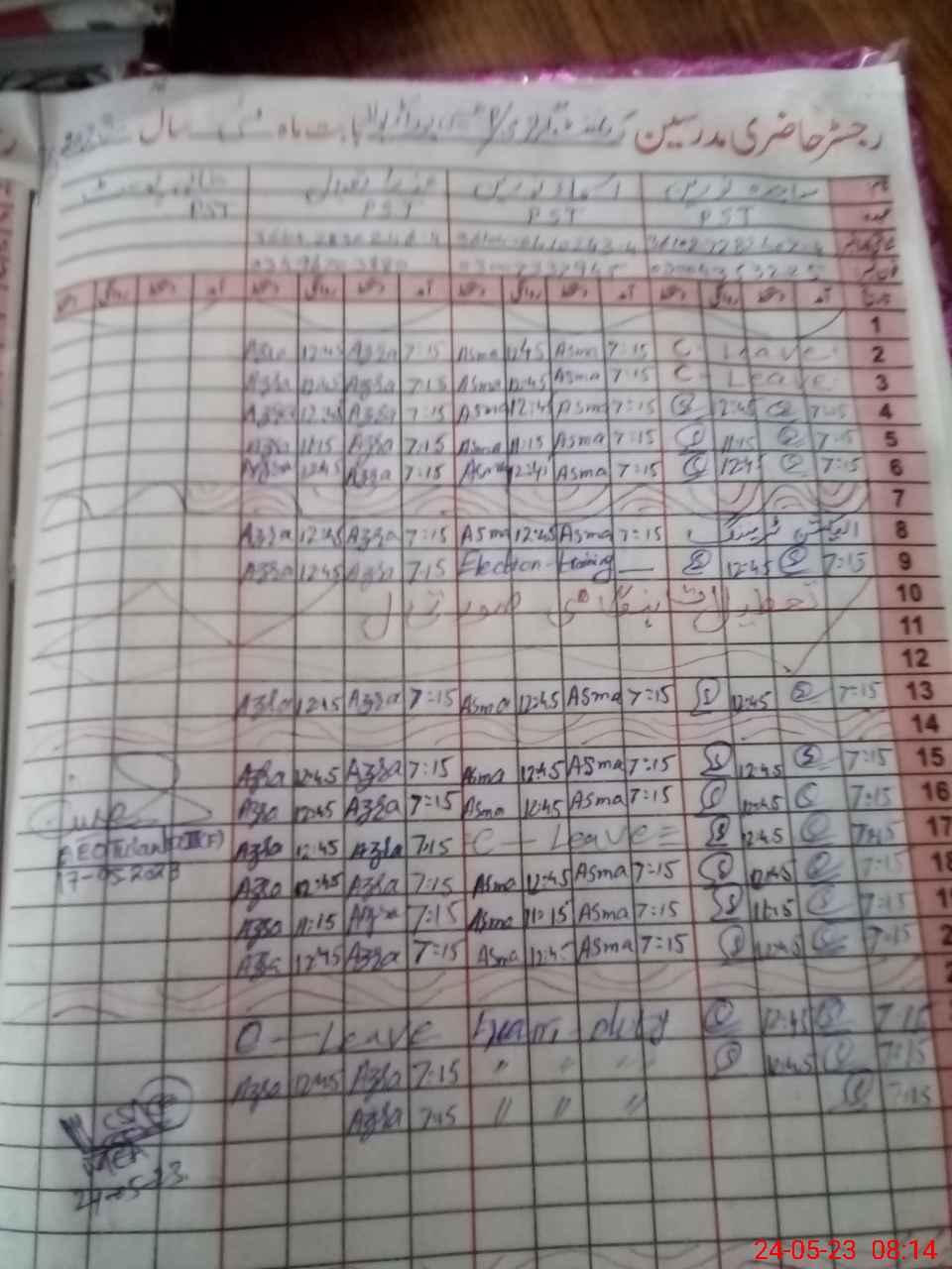 | 36**** | As**** No**** | PST | Regular | 1 | 0 | 0 | 0 | 0 | 0 | 0 | 0 | 1 | Exam Duty |