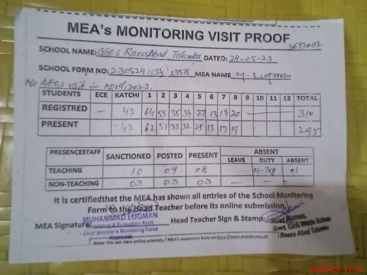 | EMIS Code: 36430112 | Name of School: GGES RAEES ABAD, TULAMBA | |||