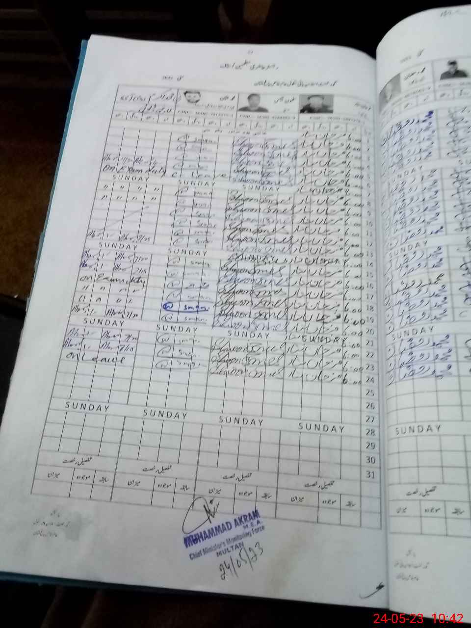 | CNIC | Full Name | Designation | R/C | Absence during last cal. month |