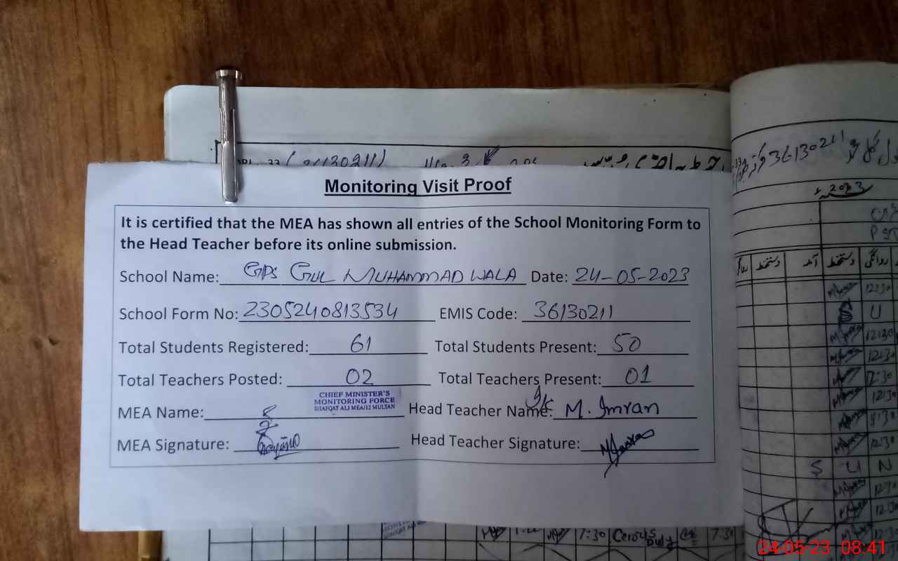 | EMIS Code: 36130211 | Name of School: GPS GUL MUHAMMAD WALA MULTAN | |||