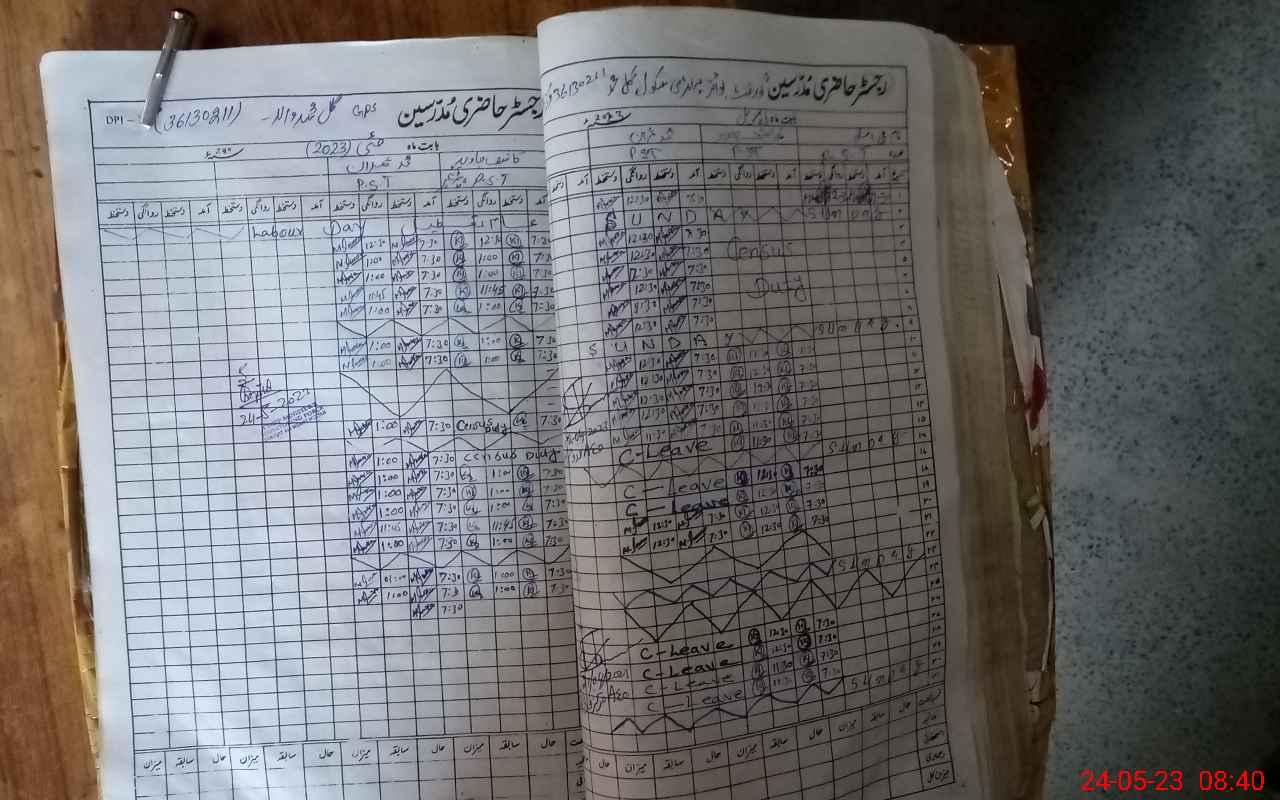 | Total no. of Classrooms: 2 No. of Classrooms Used for Teaching: 2 No. of Classrooms Storing Old Furniture, FTBs, etc: 0Comments if Any: HEAD TEACHER KASHIF JAVEED IS NOT AVAILABLE IN SCHOOL ATTENDENCE COLOUMN IS BLANK SO HE IS ABSENT TODAY NSB BANK RECORD NOT MAINTAINED 36130211 GPS GUL MUHAMMAD WALA |