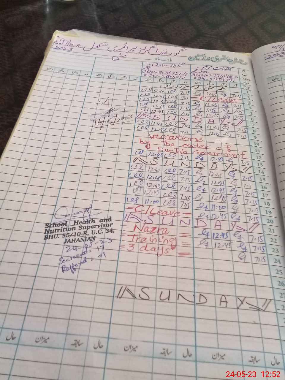 | CNIC | Full Name | Designation | R/C | Absence During Last Calender Month |