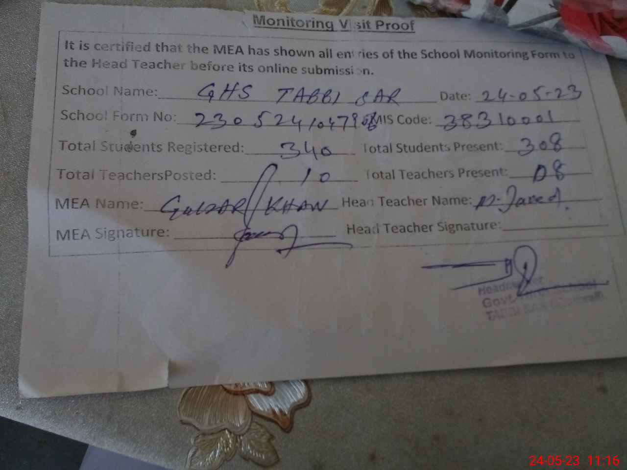 | EMIS Code: 38310001 | Name of School: GHS TABBI SAR | |||