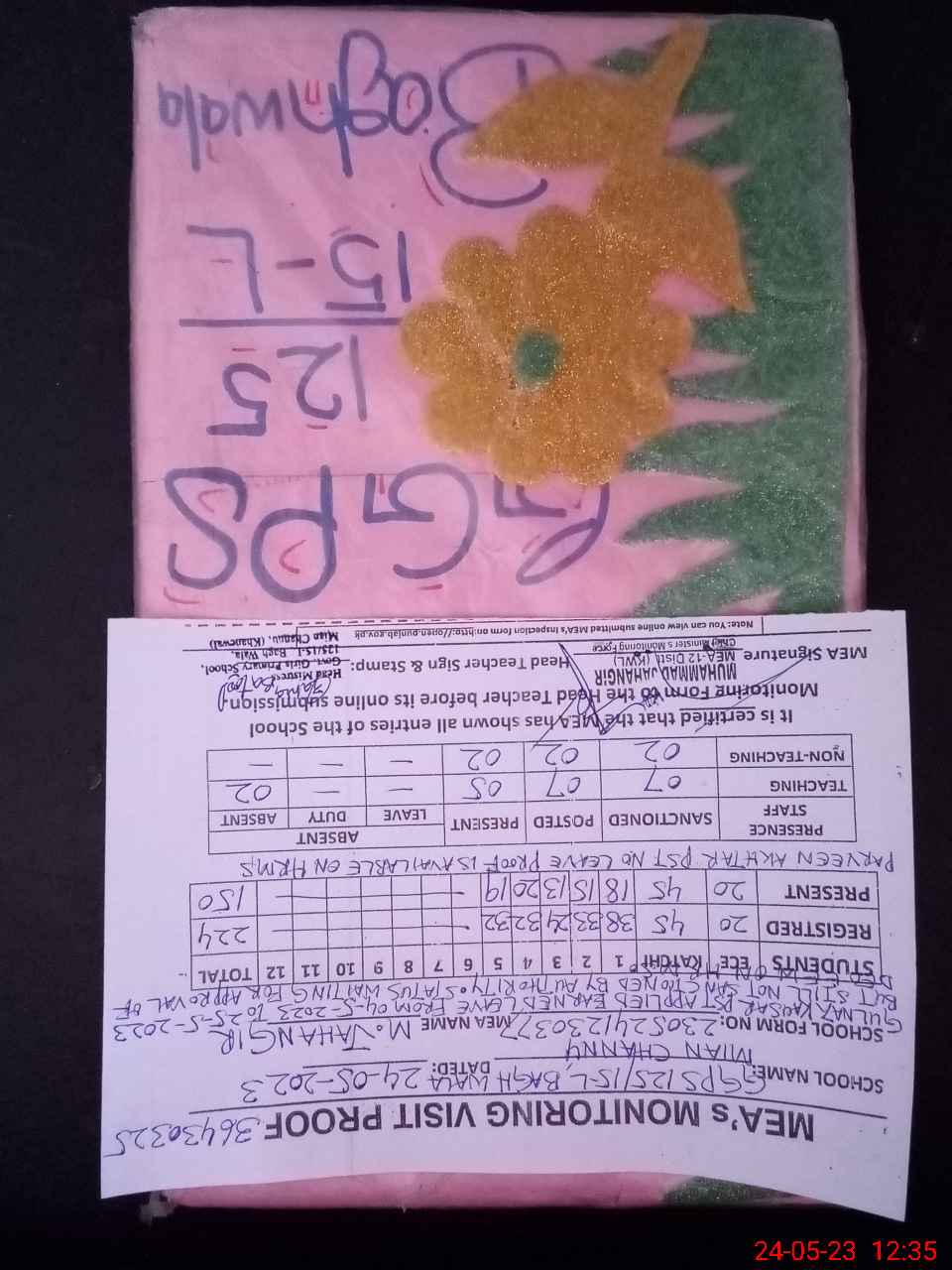 | Remarks (Use Separate Page if Required): GULNAZ KAUSAR PST APPLIED EARNED LEAVE FROM 04 MAY 2023 TO 25 MAY 2023 BUT STILL NOT SANCTIONED BY AUTHORITY STATUS WAITING FOR APPROVAL OF DEO EEW ON HRMS AND PARVEEN AKHTAR PST NO LEAVE PROOF IS AVAILABLE ON HRMS STUDENTS ATTENDANCE REGISTERS ARE NOT MAINTAINED ALL WASHING POINTS ARE WITHOUT SOAP RANDOM CLASS FIVE IS PASSED OUT FROM THIS SCHOOL LESSON PLANS ARE NOT AVAILABLE | |||||