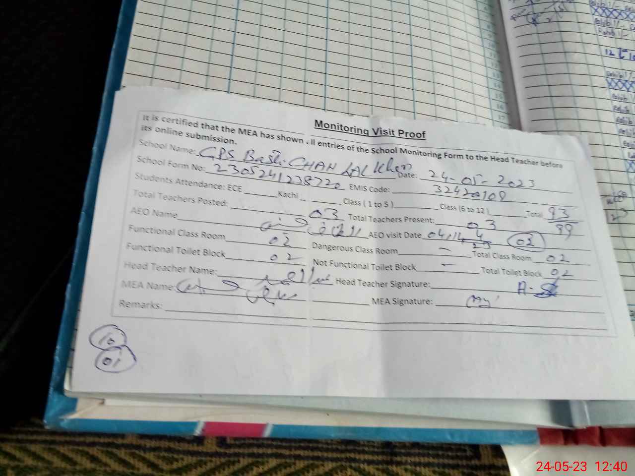 | Attendance Register | Head Teacher | MEA with School | Visit Proof |