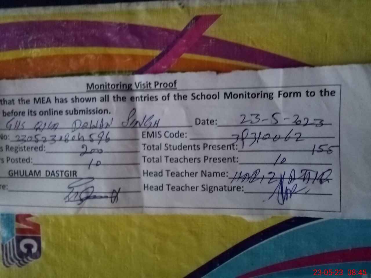 | EMIS Code: 39310062 | Name of School: GHS QILA DEWAN SINGH | |||
